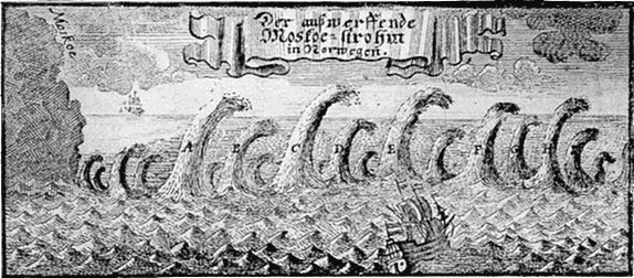 In alten Seekarten wurde sie mit mit abschreckenden Illustrationen und Warnungen versehen. In den Romanen von Edgar Allan Poe und Jules Verne spielt die Strömung ebenfalls eine Rolle.